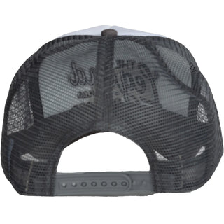Gifting for a retiree? This adjustable snapback trucker hat has a plastic strap with 7 adjustable settings. The cotton gray brim, white neoprene upper, and gray mesh sides are all sewn together to construct the baseball cap. Perfect for the days in the sunshine, out golfing, or on the boat!